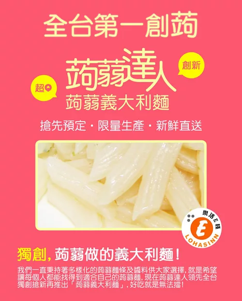 樂活e棧 低卡蒟蒻麵 義大利麵+5醬-研發沿革 :