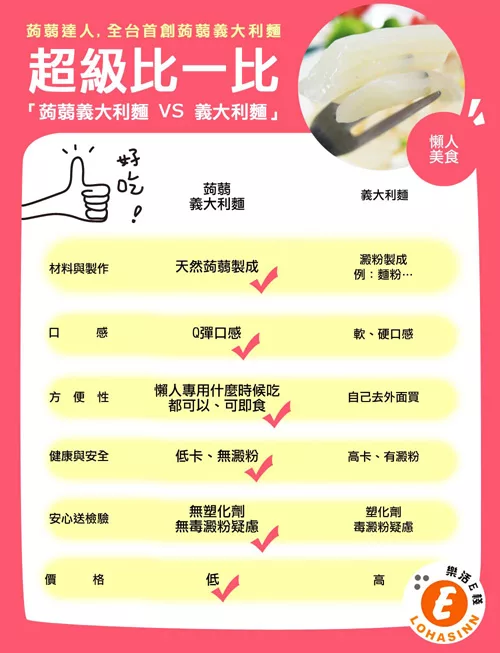 樂活e棧 低卡蒟蒻麵 義大利麵+5醬-超級比一比: