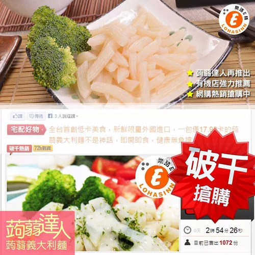 超過20個知名網購及團購通路販售的蒟蒻麵領導品牌