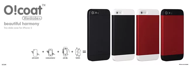 Ozaki O!Coat Wardrobe+ 三重奏滑入式保護殼,依循iPhone5機背設計概念,設計成方便拆裝的三件組合式保護殼。表層經過橡膠塗層處理,不僅觸感佳、更好握,同時側邊高於螢幕邊框的設計,若不慎將螢幕在桌面上滑動,也不需擔心會刮傷iPhone5的螢幕。